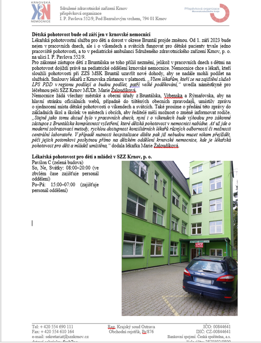 Úvod > Život v obci > Aktuality > Od září bude dětská pohotovost pouze v krnovské nemocnici