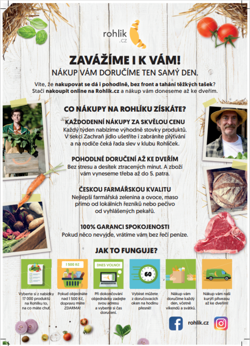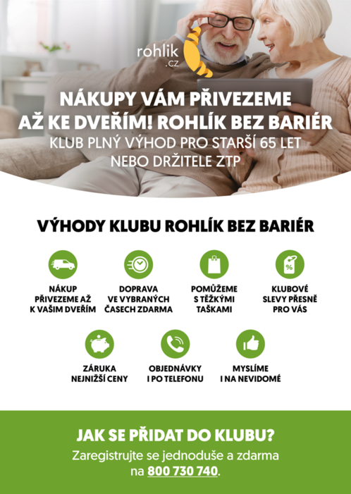 K tomu všemu navíc nabízí i jistá zvýhodnění pro občany, kteří to podle nás nejvíce potřebují. Májí tak například klub ROHLÍČEK pro rodiny s dětmi do 12 let, nebo klub ROHLÍK BEZ BARIÉR pro seniory, či držitele průkazu ZTP. Tyto kluby jsou samozřejmě zdarma a nabízí spoustu výhod, jako dopravu zdarma v určité časy, slevy na vybrané produkty, a pro seniory, kteří nemají internet, nebo si třeba úplně nerozumí s technikou nabízí možnost telefonických objednávek...
