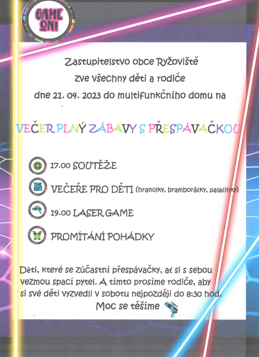 Na pátek 21. dubna připravili zastupitelé obce pro děti ,,Večer plný zábavy s přespávačkou."